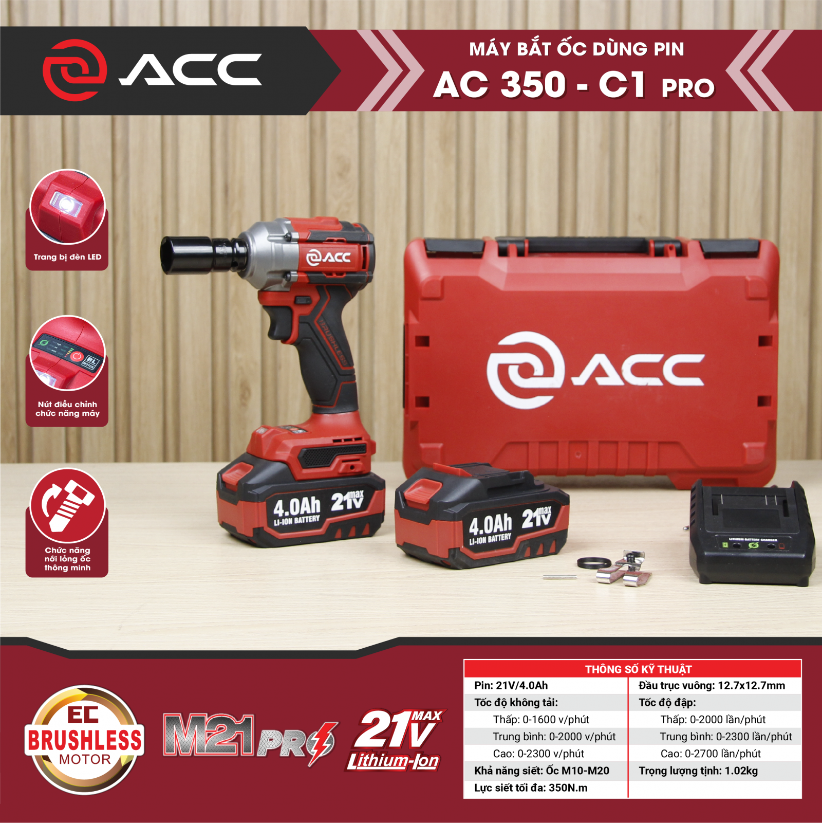 Máy bắt ốc dùng pin AC350-C1 PRO thuộc bộ sưu tập mới nhất nhà ACC, là công cụ lý tưởng dành cho những công việc tháo lắp, sửa chữa và lắp đặt đòi hỏi tốc độ và độ chính xác cao. Với thiết kế gọn nhẹ và tính năng vượt trội, đây là sản phẩm này giúp người dùng hoàn thành công việc nhanh chóng, hiệu quả và an toàn.