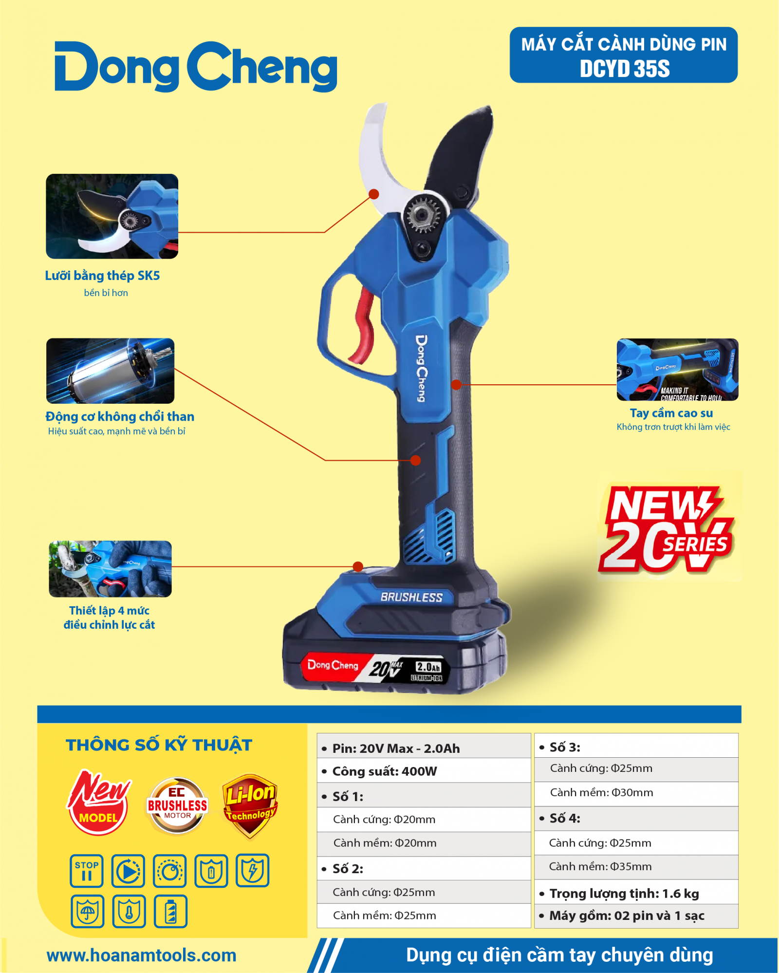 1. Đặc điểm nổi bật của máy cắt cành dùng pin DCYD 35S