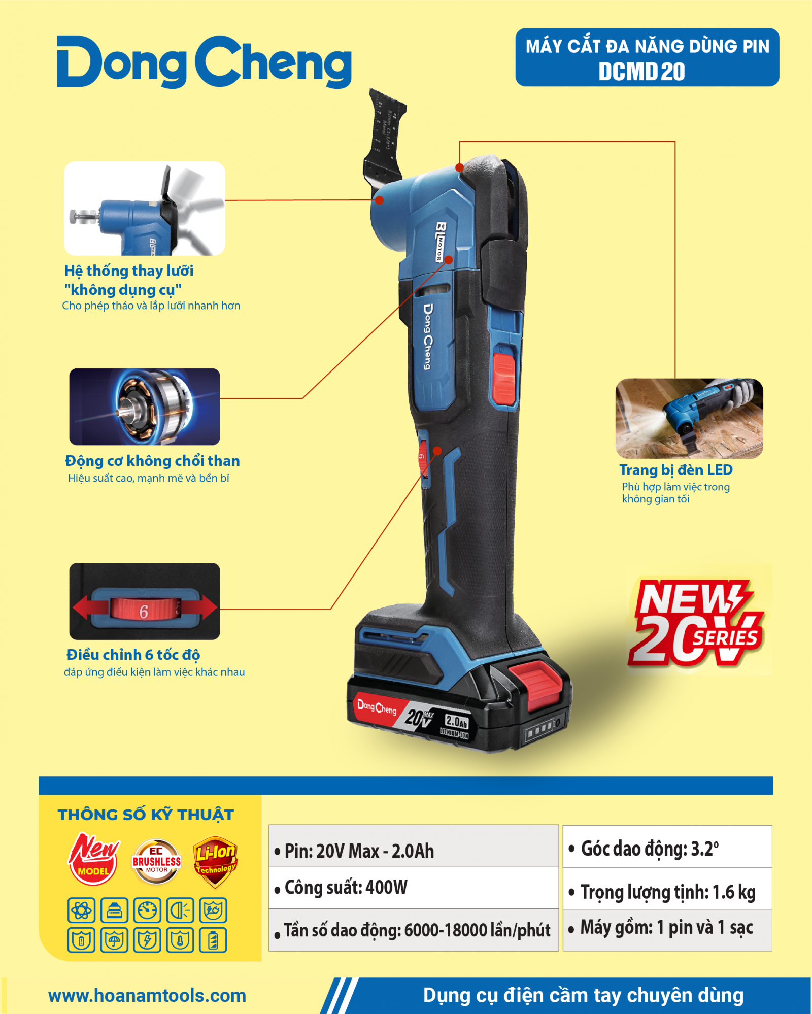 1. Đặc điểm nổi bật của máy cắt đa năng dùng pin DCMD 20
