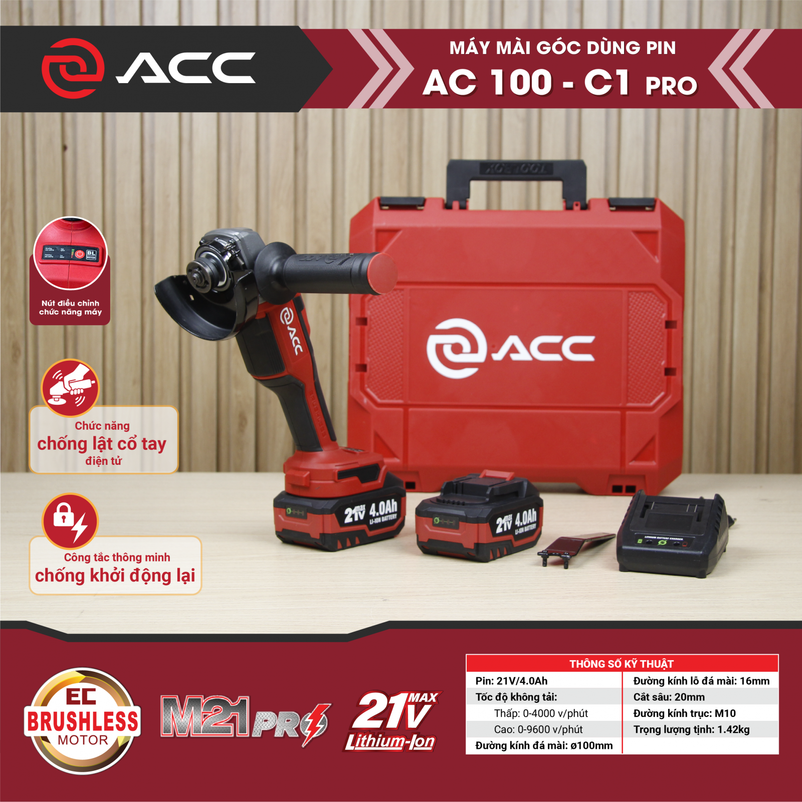 So Sánh Thông Số Kỹ Thuật Máy Mài Góc Dùng Pin AC100-C1 PRO và AC 100A1
